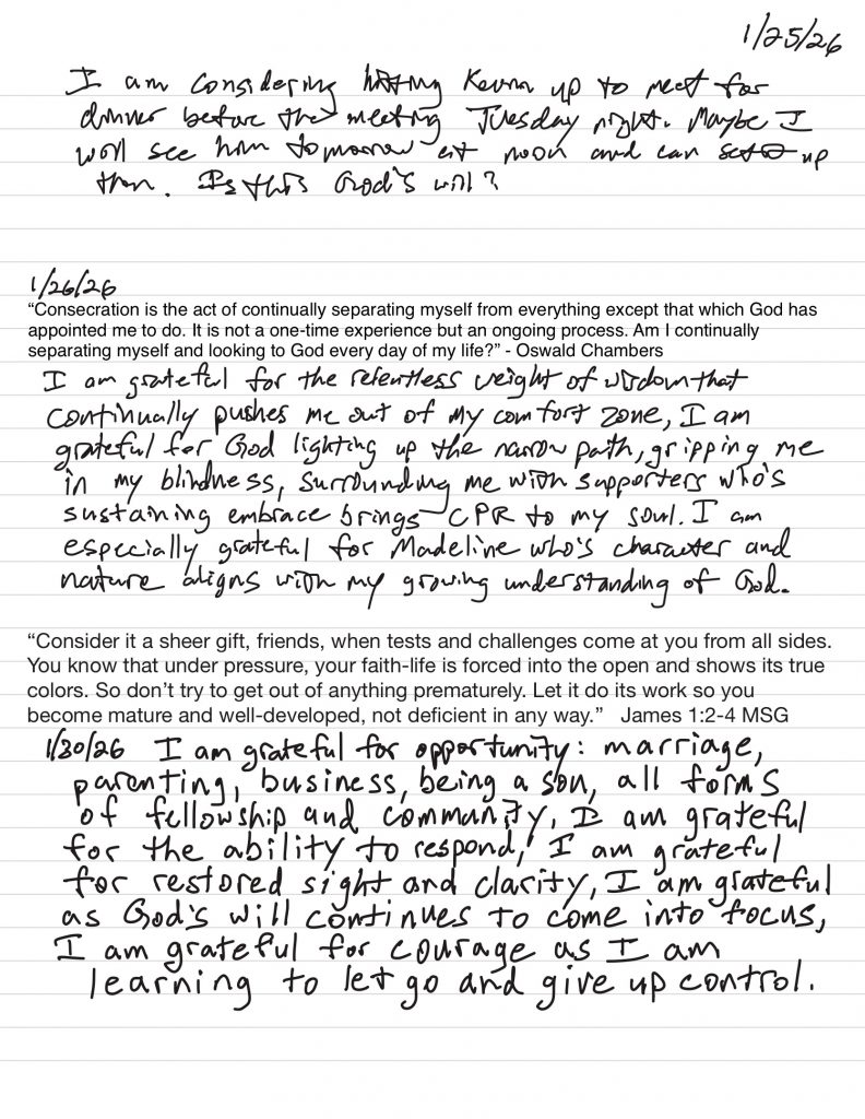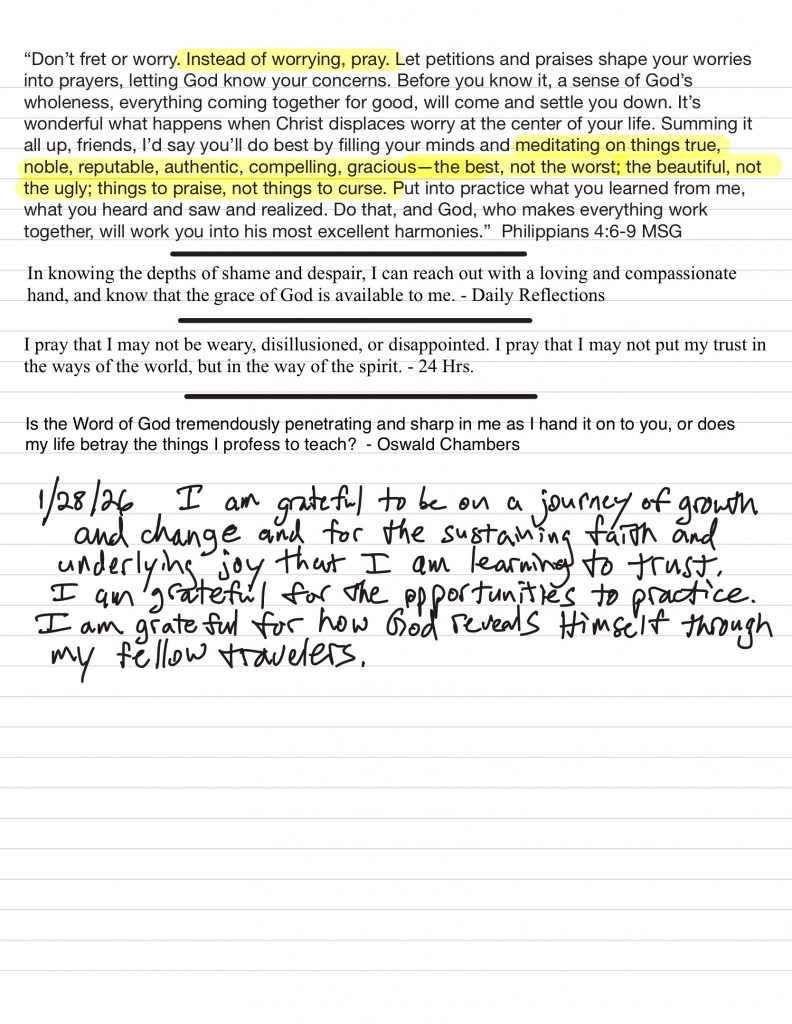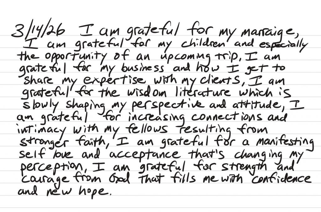 • I meditate on what I am grateful for and compose a list and share it with my community of faithful partners.